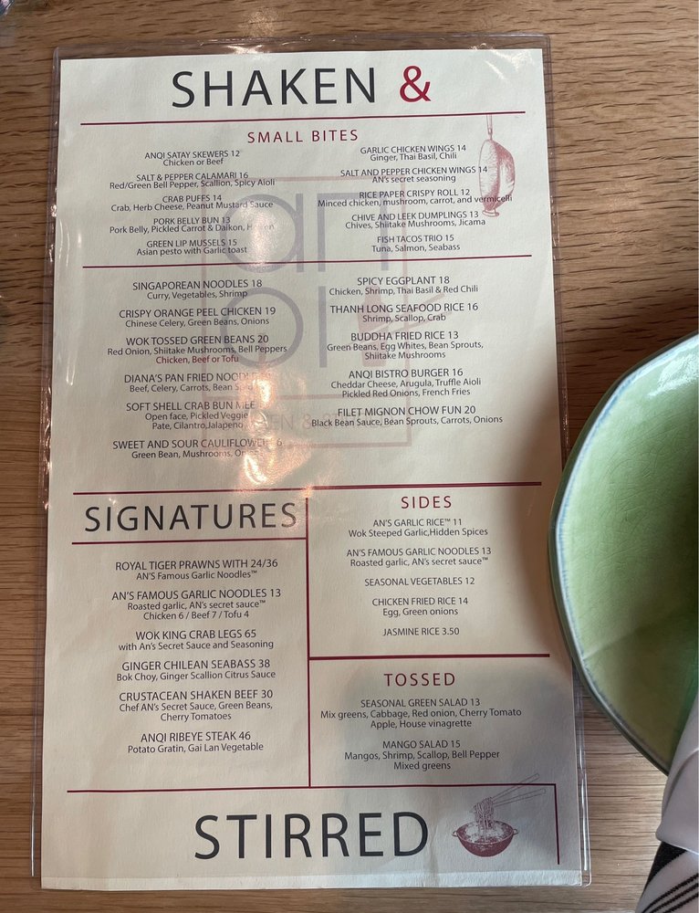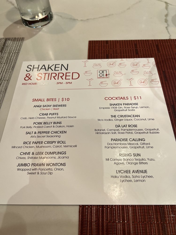 Welcome to AnQi Shaken & Stirred, a hidden gem nestled inside Bloomingdale's at 2847 Stevens Creek Blvd, Santa Clara. This Vietnamese culinary oasis offers a thoughtfully curated menu that showcases fresh, vibrant flavors and beautifully presented dishes.